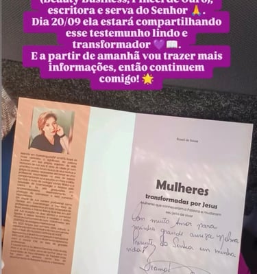 Sua história inspira, fortalece e transforma o coração de muitas mulheres, mostrando que é possível superar medos, frustrações e momentos difíceis.
